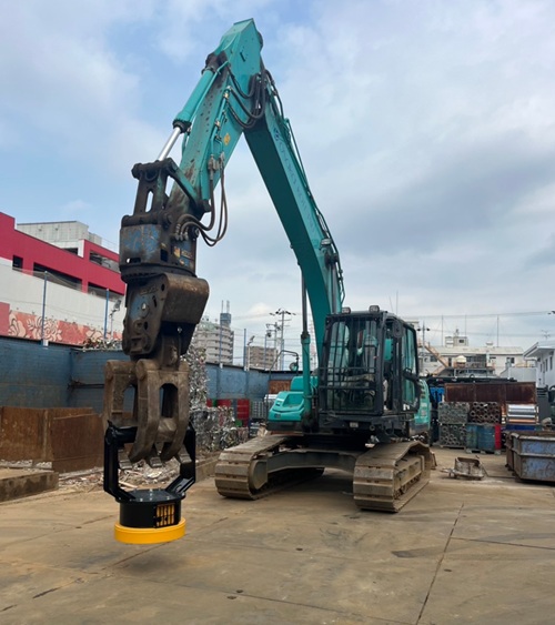 同営業所では21年に作業効率性や安全性を飛躍的に高めるべく、リニューアル工事を実施。駐車場などに利用していた隣接地(約2,300㎡)との壁を取り除いたことにより、総敷地面積7,000㎡に工場を拡張し、扱い量の増加を目指せる下地を整えてきた。屋外で荷捌きを行う重機アタッチメントにはフォークグラップルを活用しているが、工場発生や市中老廃を幅広く取り扱う同営業所において、細かい鉄スクラップなど荷姿によっては掴みだけで対応しにくい側面を抱えていた。リフマグの導入も検討していたが、アタッチメントを付け替える手間を考慮すれば、フォークグラップルを装着したまま必要に応じてマグネットを使い分けた方が、作業効率の向上につながるほか、工場全体を簡単に移動できる使い勝手の良さも決め手となり、「HIMAT-R」の導入を決断した。今後は発生工場などの状況に応じて、引き取りでの活用も検討している。