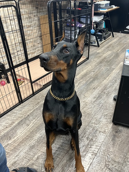同社は昨年、顧客からドーベルマンの子犬を譲り受け、看板犬として迎え入れている。名前は「ノアちゃん(メス・犬名=ダイヤオブスーパークィーン)」。非常に温厚で社交的な性格につき、社員や顧客からも慕われ人気者だ。また日本警察犬協会主催の審査会で1位に輝くなど優秀な資質の持ち主でもある。