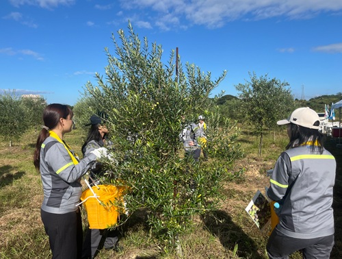 当日は和やかな雰囲気の中、手作業での摘み取りと選別作業を行い、収穫されたオリーブはオリーブオイルに加工する予定だ。