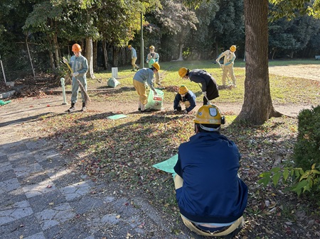 当日は天候に恵まれ、雲ひとつない快晴の下、参加者は落ち葉やゴミを約1時間ほどかけて回収した。