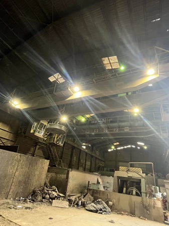 (大阪)大阪故鉄(本社=大阪市住之江区、矢追大祐社長)はこのほど、本社工場の天井クレーン1基の照明をLED照明に交換した。従業員の安全対策向上に向けた取り組みであり、今後は諸福工場の油圧シャーのピット内にも、既存の照明からLED照明に交換する予定だ。