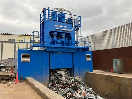 これまで同工場は、仕入れたスクラップを本社工場へ搬送し、炉前スクラップに加工していた。しかし、限られた人員体制の中で、搬送に人員を割り当てることは作業効率の低下につながる恐れがあると感じていた。さらに同工場では、手作業による非鉄スクラップの解体・選別も行っており、ドライバーなどの確保が難しい状況にもあった。こうしたことから、人手不足などの課題を解決するため、油圧シャーの導入に踏み切った。