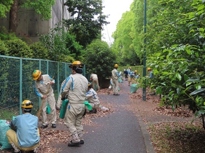 当日は穏やかな気候のもと、落ち葉やごみ、雑草などを1時間ほどかけて回収した。